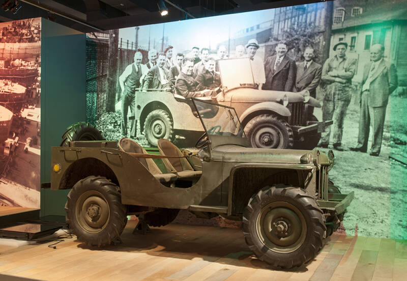 This image is the earliest model of the Bantam Jeep, which was used during the war. Robert Ainsworth was born in Pittsburgh, the city in which the Bantam Jeeps were manufactured.